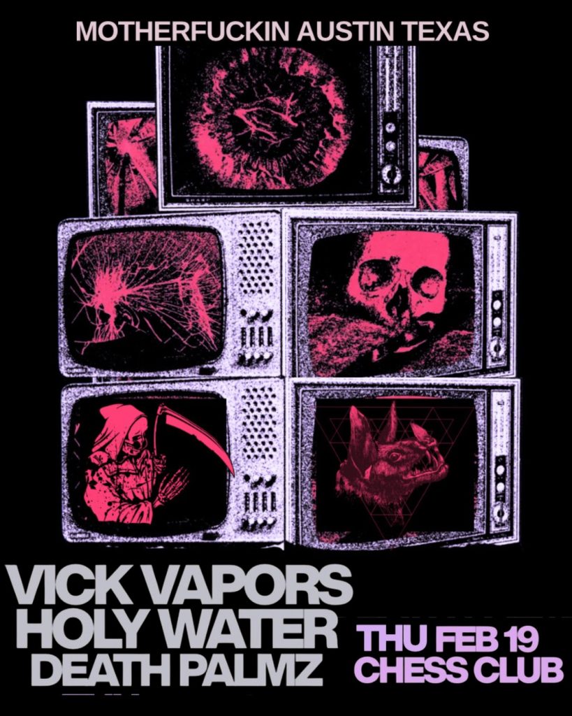 10pm – Death Palmz11pm – Holy Water12am – Vick Vapors$12 / 21+